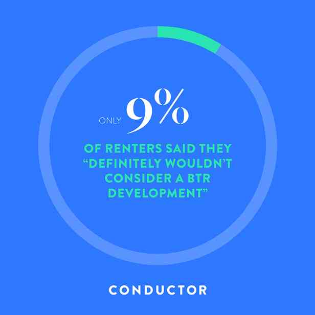 - Only a small percentage, 9%, said they "definitely wouldn't consider it," indicating that BTR developments have potential appeal to many renters.