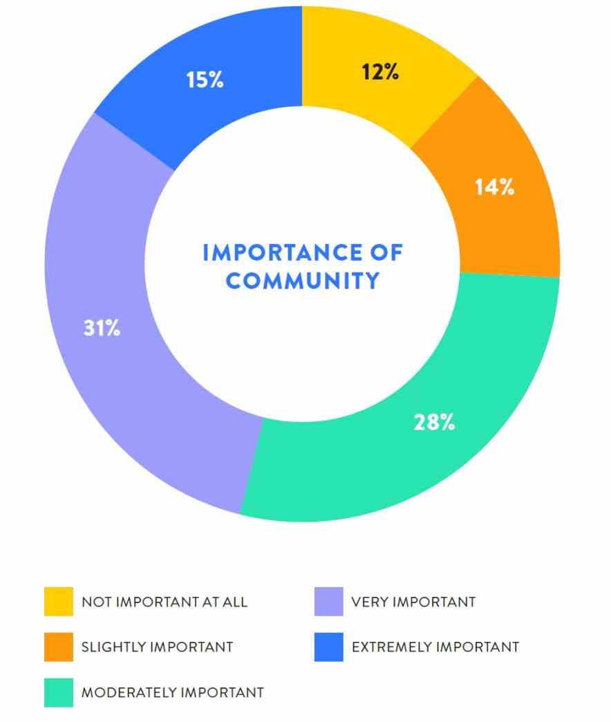 - Community matters; their desire for a sense of community is the third top factor, closely followed by their interest in meeting new people.