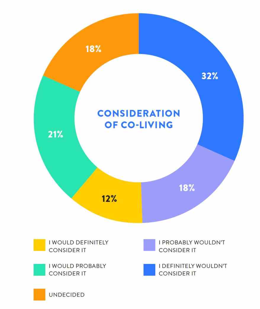 - A third of all respondents would consider co-living properties, showcasing a significant potential market yet showing that this type of living is not for everyone.